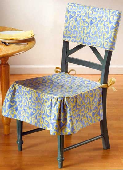 يمكن استخدام أقمشة أغلفة الكرسي بطريقة غير مكلفة ، طالما أنها سهلة الغسل والحديد.
