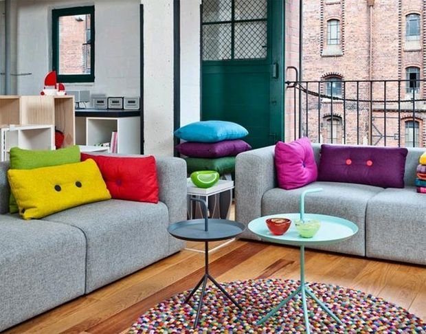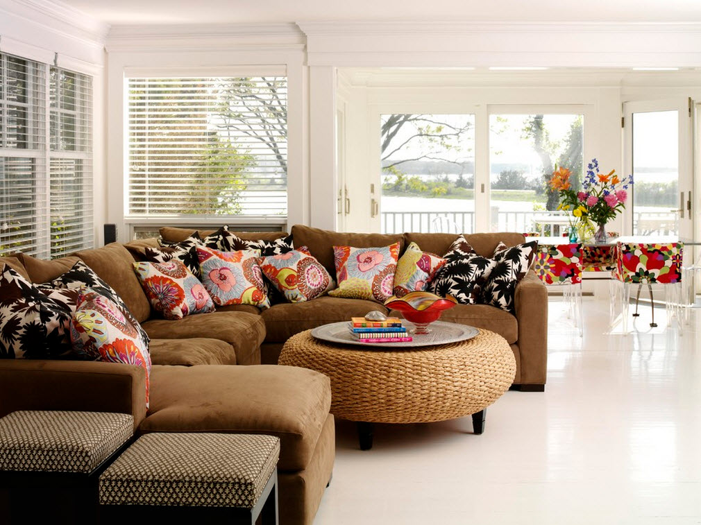 سوف تبدو أكثر إثارة للاهتمام ، والأثاث المنجد ، مزينة بمجموعة متنوعة من الوسائد: كبيرة وصغيرة ، ملونة وأحادية اللون ، وضعت في ترتيب معين أو ألقيت عرضا.