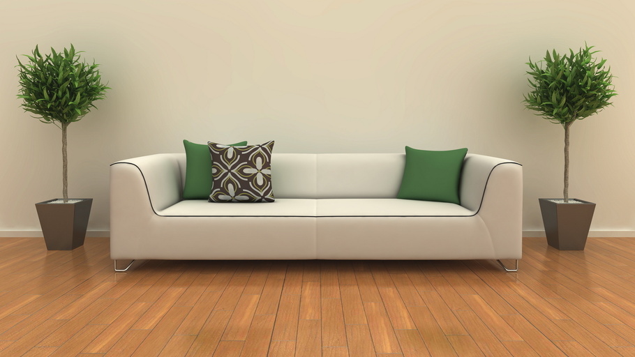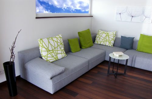 صوفا "اسكتلندية" عصرية مع وسائد عادية في داخل غرفة المعيشة
