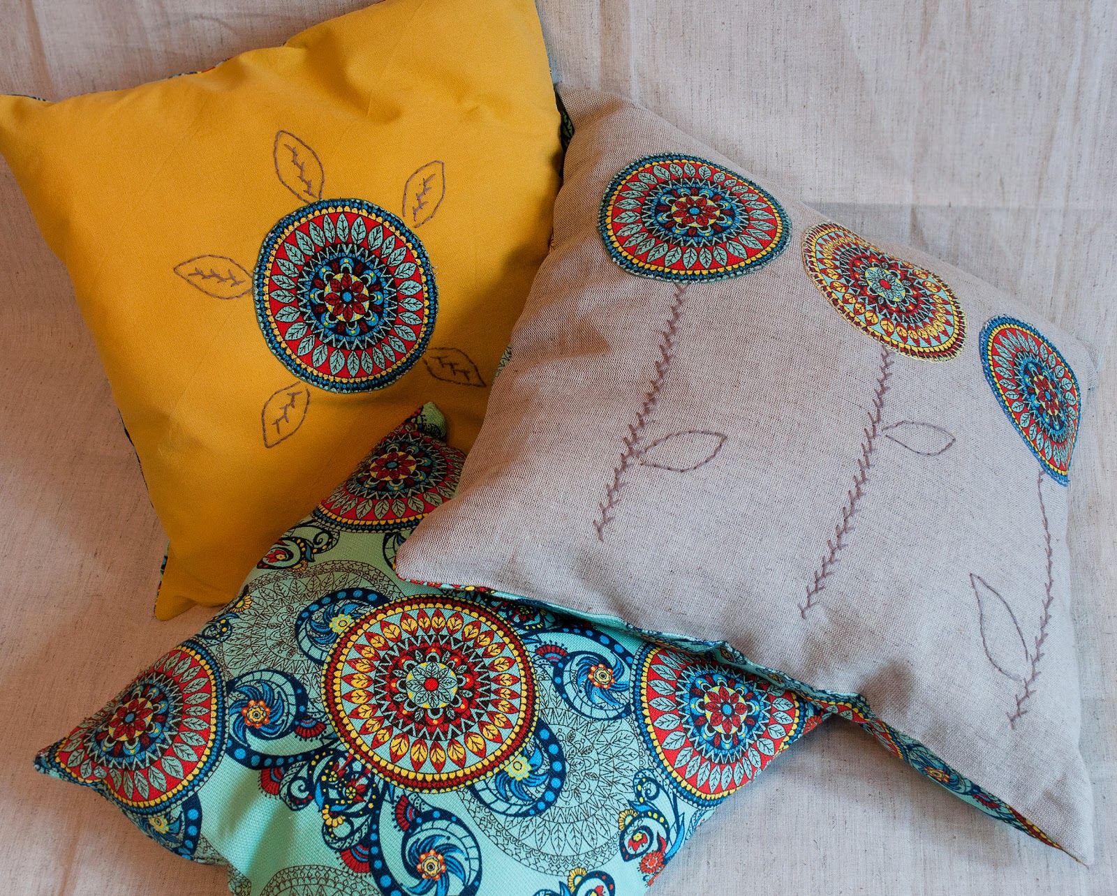 المجموعة الأصلية من الوسائد ، مصنوعة باستخدام مجموعات الألوان نفسها ، ولكن في أشكال مختلفة