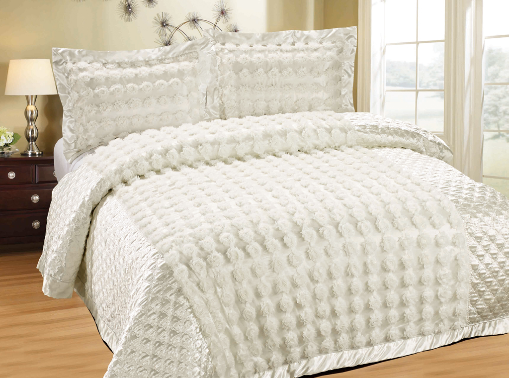 بالنسبة للنسخة الصيفية من غطاء السرير ، سوف يتناسب نسيج الساتان مع الاحتفاظ بألوانه الزاهية والألوان الزاهية لفترة طويلة.