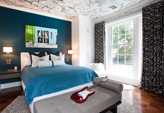 واحدة من أسهل الطرق لتسليط الضوء على الجدار على رأس سريرك هي لصق على خلفية مع نمط أو نمط.