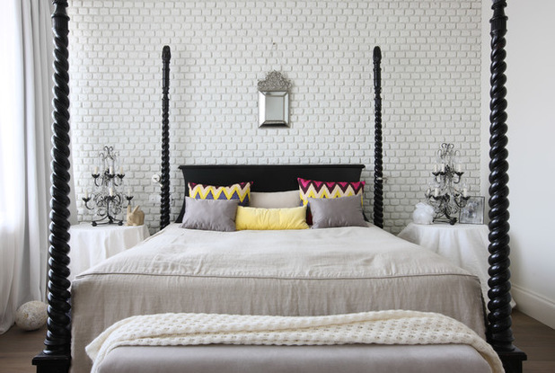 حسنًا ، بالنسبة للطابق العلوي في غرفة النوم ، فإن جميع الشرائع والقواعد تدعم حرفيًا استخدام الطوب في تصميم الجدران.