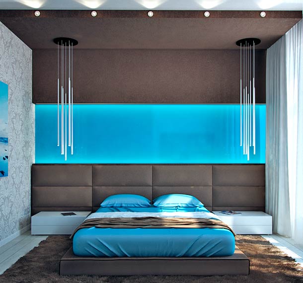 غرفة النوم هي مساحة خاصة ، هنا لا داعي للقلق بشأن الراحة والجو الدافئ لجميع أفراد الأسرة ، لا تحتاج إلى أن تأخذ في الاعتبار الإدمانات ورغبات الأسرة.