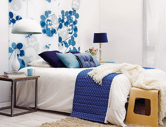 حتى استطرادا صغيرا من لوحة الألوان العامة أو استخدام خلفية مع نقش من نفس اللون مثل الغرفة بأكملها كخلفية ستتيح لك التركيز على الحائط بجانب السرير.
