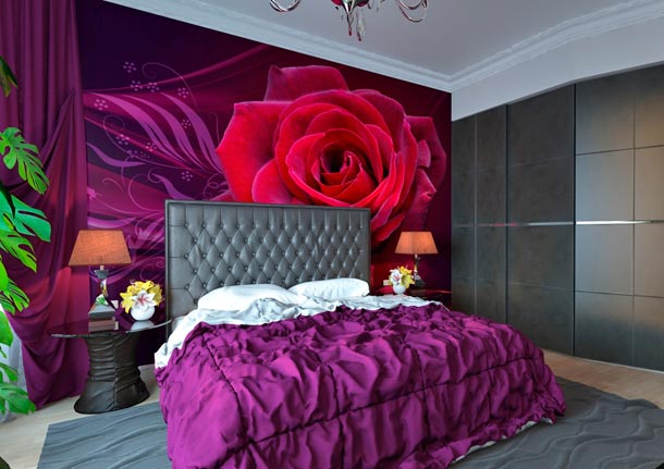 لغرفة النوم هو الأفضل لالتقاط الألوان الدافئة. يمكن أن تتداخل صورة جذابة على الحائط بالكامل مع الاسترخاء المناسب. للحصول على خلفية عالية التقنية على غرار مناسبة تماما مع موضوع الحضرية. إذا لم يكن من الممكن استخدام المواد الطبيعية ، فيمكن استبدالها بخلفيات الصور الفوتوغرافية ، التي تشبه الخشب والطوب والحجر. لمحبي صورك الخاصة ، يمكنك طلب خلفيات صور مصنوعة من إحدى صورك.