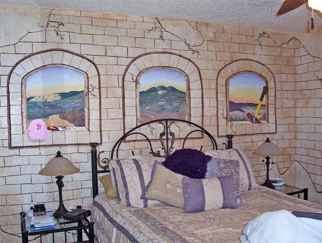 هذا خيار أكثر تكلفة من مجرد صورة. ولكن لها مزاياه. يمكن تحديد حجم خلفية الصورة وفقًا لحجم الجدار ، لإجراء أي ترتيب تريده.