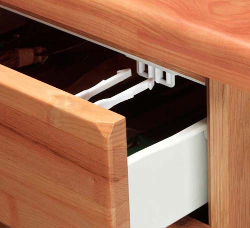 يمنع القفل الفتح الكامل للأدراج مع تثبيت علوي.