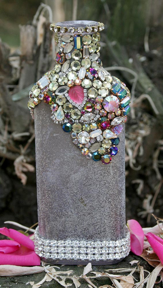 يمكنك تخفيف زخرفة الزجاجة هذه مع البريق وأحجار الراين.