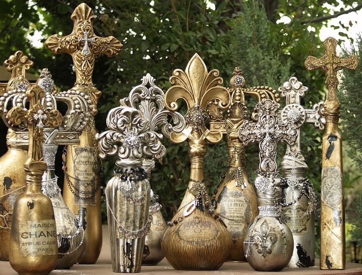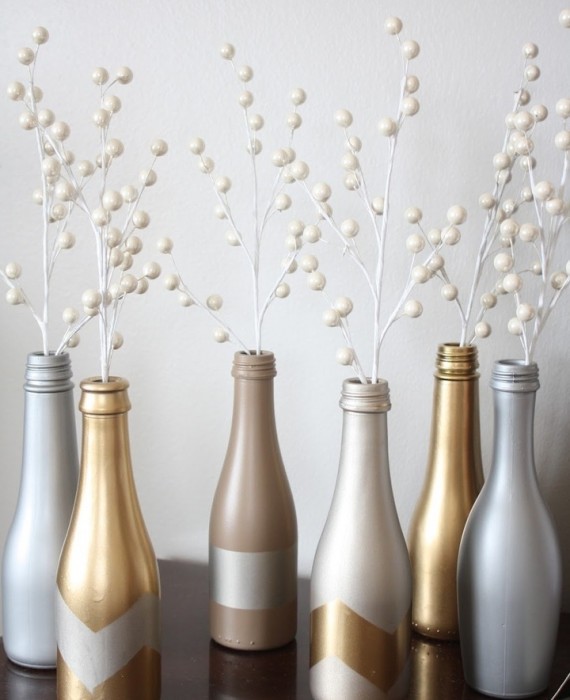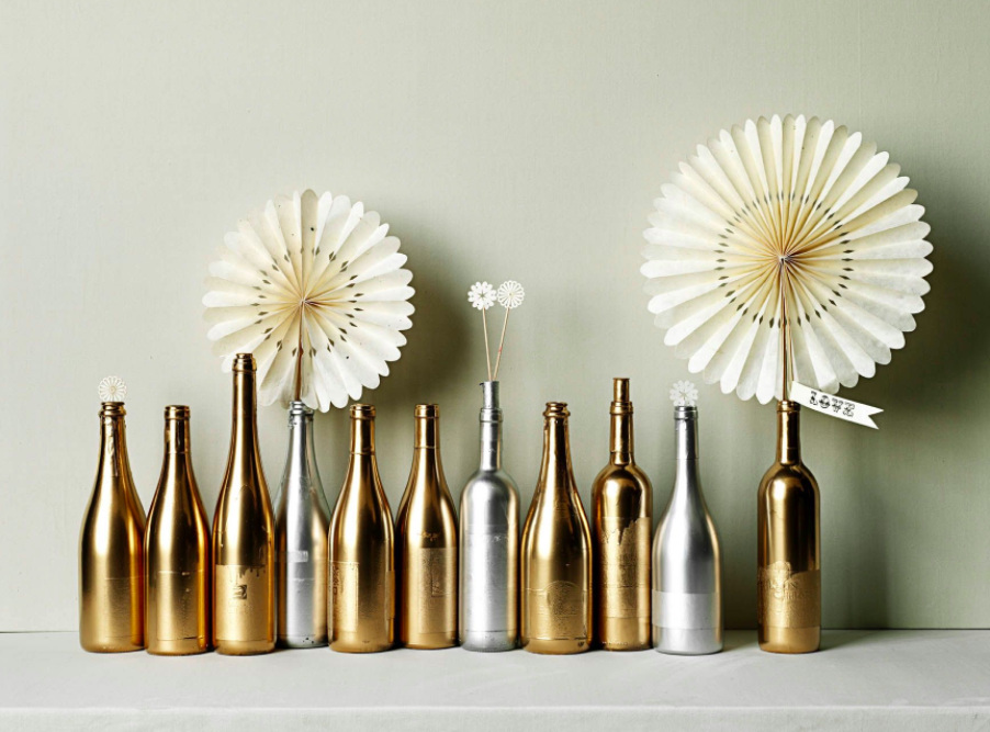 زخرفة مميزة من الزجاجات المطلية بالذهب.