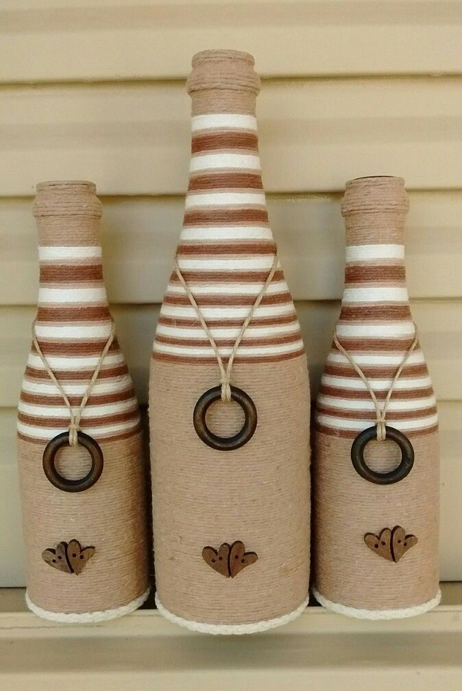 تتميز زجاجات التزيين مع خيوط أيضًا بالخصائص العامة للعمل ، وكذلك عند تزيينها بالحبال والخيوط.