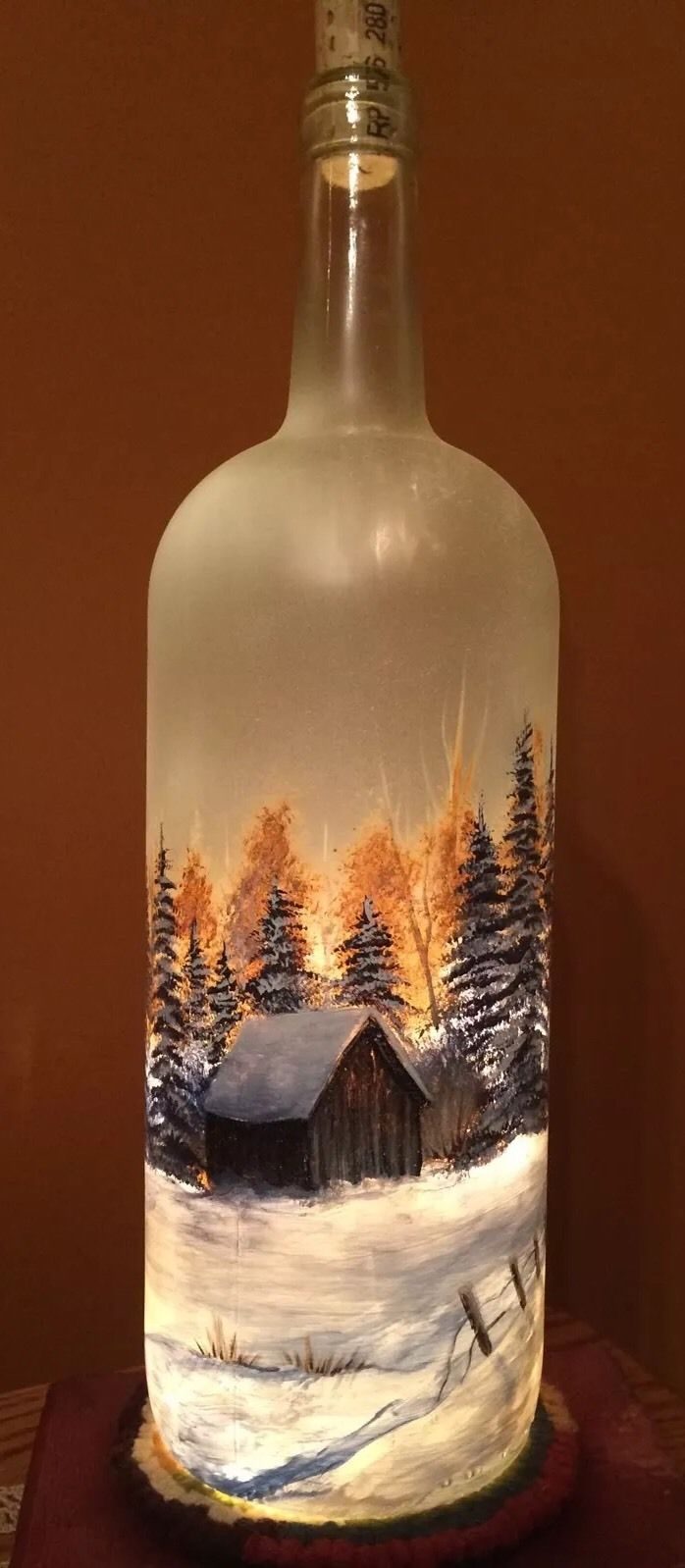 زجاجة مزينة في فصل الشتاء ، يمكن أن يصبح أسلوب السنة الجديدة زخرفة لطاولة احتفالية ، وجزء من ديكور غرفة حيث سيتم الاحتفال بالأعياد.