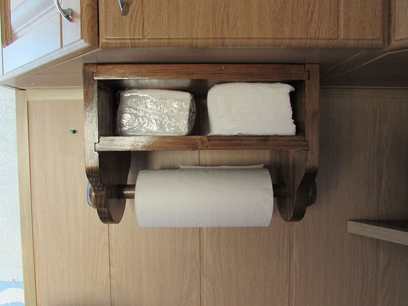 تصنع حوامل إما الجدار (شنقا) أو سطح المكتب. مع هذا التصميم ، لا تقلق من أن لفة سوف تسقط أو لفة في مكان ما. علاوة على ذلك ، يمكن وضع الحامل بحيث يكون من المناسب دائمًا الوصول إلى المناديل. وبالنسبة للمضيفات ، فإن الراحة القصوى في المطبخ هي مفتاح النجاح.