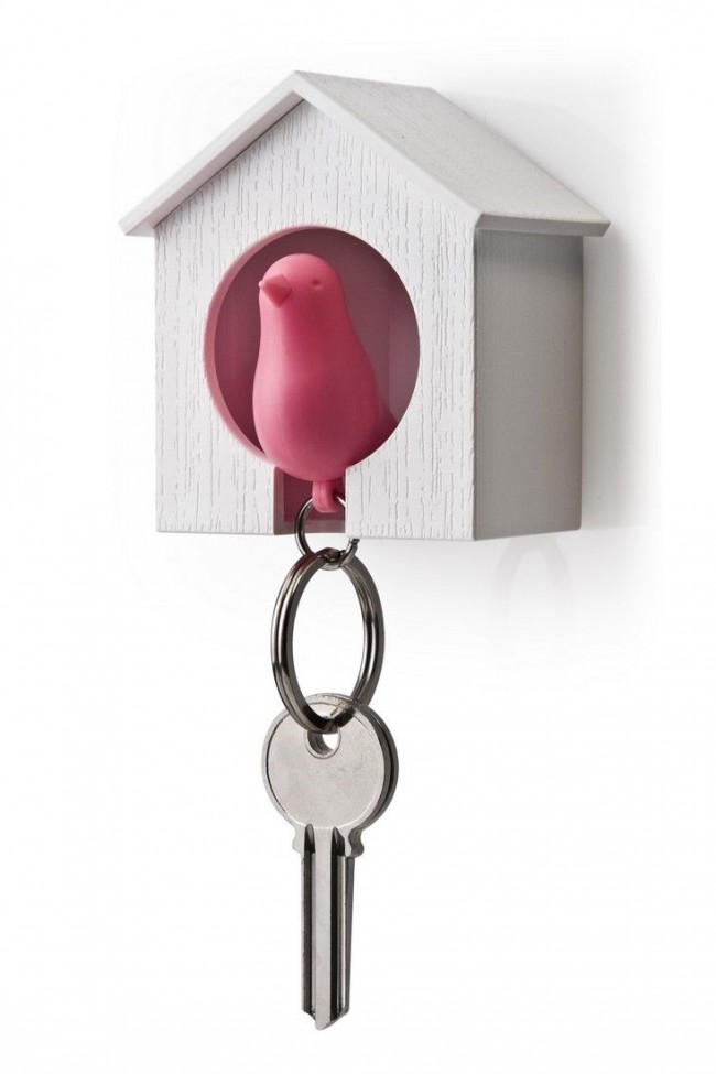 يمكنك إنشاء علاقة حائط أصلية للمفاتيح على شكل منزل يشبه birdhouse مع الأبواب. يمكن أن تكون مواد التصنيع أي: المنسوجات والكرتون والخشب. وفقا للاحصاءات ، العديد من جماليات تفضل دائما الخشب.