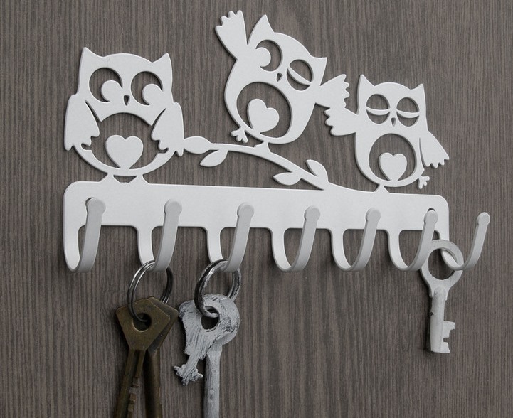 يمكن تصنيع مدبرة المنزل الأصلية من مواد مختلفة ، مما يجعل من الممكن إدراج الخيال والإبداع. خطافات - جزء مهم من المنتج ، يمكن أن تكون مختلفة جدا. يمكنك شراء الفراغات في أي متجر يبيع تجهيزات الأثاث. على سبيل المثال ، خيار مناسب - أنواع التصحيح من السنانير ، والتي يتم ربطها بسهولة مع حامل المفتاح. لإصلاح حاملي المواد مثل الخشب الرقائقي أو اللوح ، يجب أن يتم لصقها.يجب أن تتميز القاعدة اللاصقة بالالتصاق الممتاز بالخشب والمواد الأخرى (يجدر الاختيار على أساس المواد المعلقة).