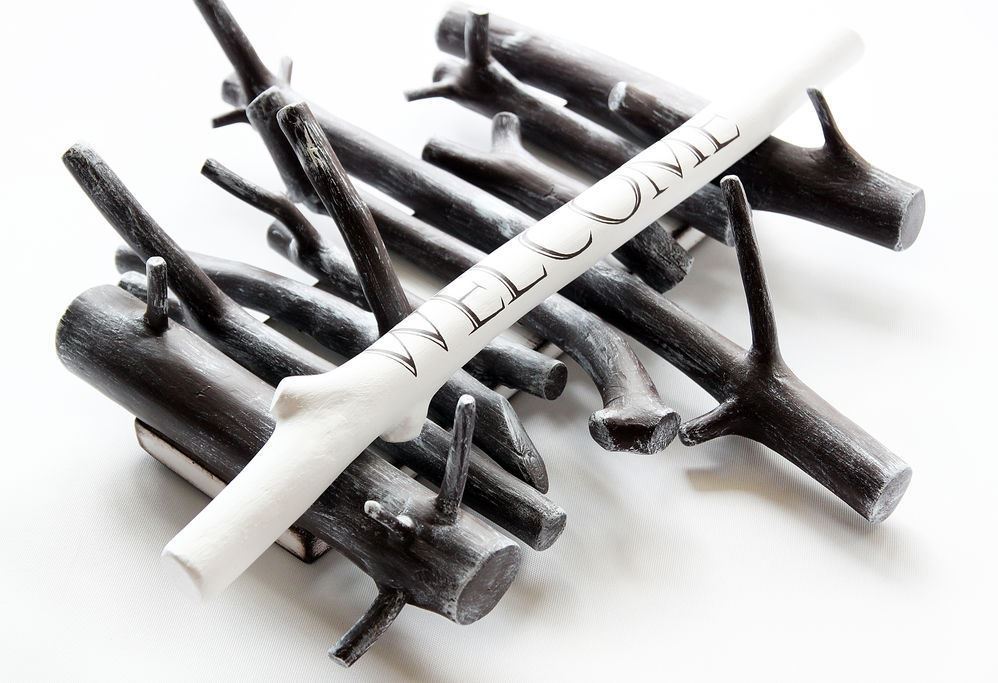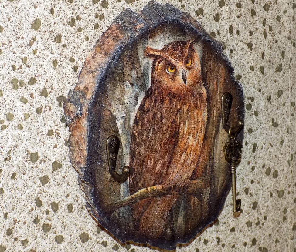 يتم تطبيق التكوين على السطح بفرشاة عريضة ، وبعد ذلك يبقى ليجف لبضع ساعات. إذا تم تطهير الفرع من اللحاء ، فقم بتغطيته بورنيش أكريليك ، تم تخفيفه مسبقًا بنسب إلى واحد بالماء. عندما تكون القاعدة جافة ، تُغطى بالورنيش غير المخفف. إذا كنت ترغب في إعطاء مدبرة المنزل ظلالاً جميلة ، فقم بطلائها بطلاء أكريليك. المرحلة النهائية هي تراكب التشطيب مع الورنيش الشفاف. خطاطيف لتعليق المفاتيح - عقدة ظلت على الفرع.
