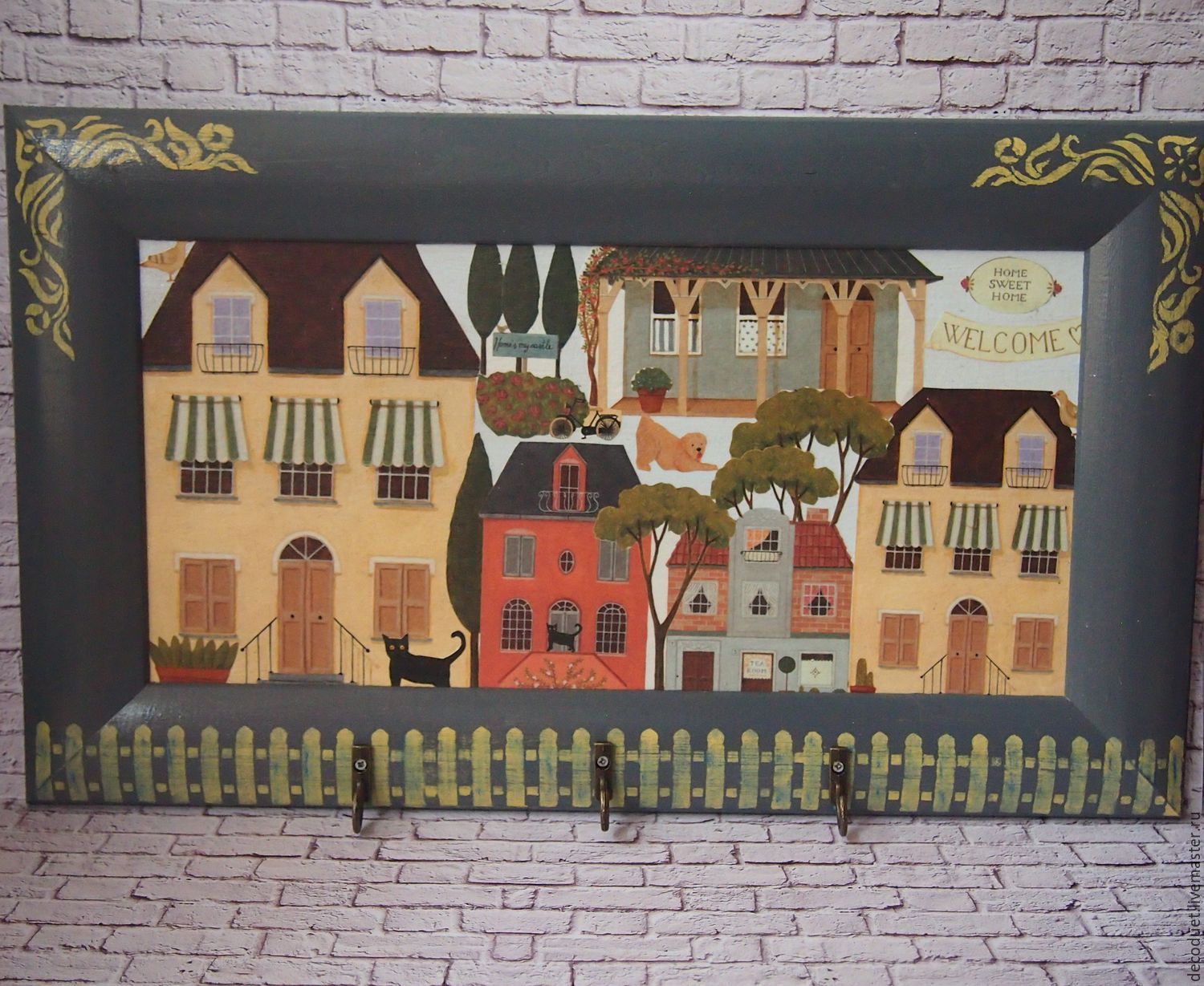 يهتم الكثيرون بالسؤال: كيف يصنع جهاز للمفاتيح (المفتاح) بأيديهم من مواد الخردة أو الخشب؟ يمكنك إنشاء تحفة حقيقية وتزيينها باستخدام تقنية decoupage. للقيام بذلك ، قم بإعداد مكان العمل: سطح الطاولة مغطى بالزيت. نأخذ القاعدة (قد يكون إطار اللوحات القديمة لحارس المفاتيح المصنوع من الخشب الرقائقي والخشب) ، ونضع اسفنجة منزلية لغسل الصحون بالطلاء الأكريليكي الأبيض ونرسمها بحركات أنيقة مؤيدة للأرفف.