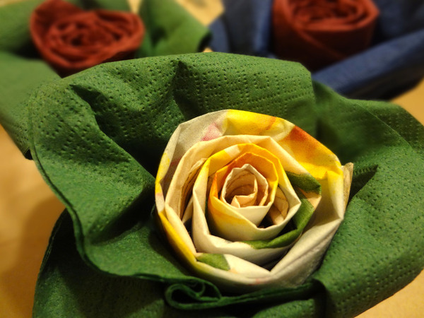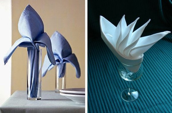 على المناديل الاحتفالية على شكل زهور تبدو جميلة جدا.