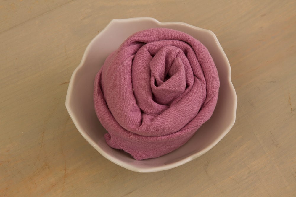 وسّع المنديل وقم بطيه بالتساوي في النصف ، من الزاوية إلى الزاوية ، لتشكيل مثلث متساوي. لفة المثلث في لفة. كرر هذا الإجراء حتى تكون النتيجة راضية عنك. أخرج الأوراق الصغيرة ، افعلها بعناية فائقة ، لأن هذا البراعم الهش سهل التلف.