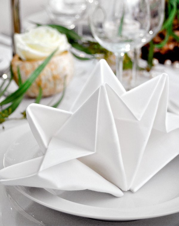المناديل الورقية لوتس: زخرفة بسيطة وجميلة من الجدول احتفالي.