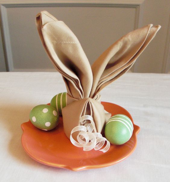 أرنب عيد الفصح المصنوع من فوط سوف يزين المائدة الاحتفالية وسيثير إعجاب ضيوفك بالتأكيد.