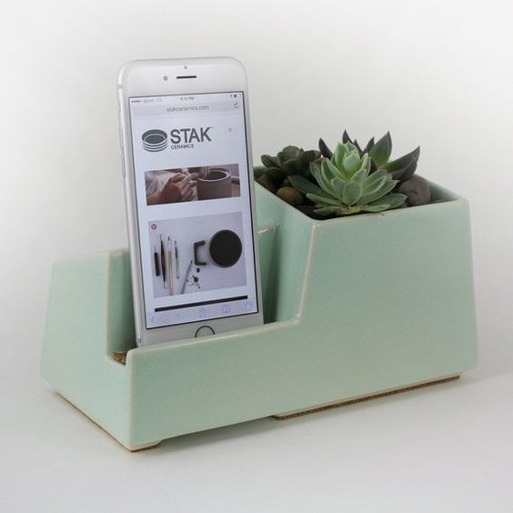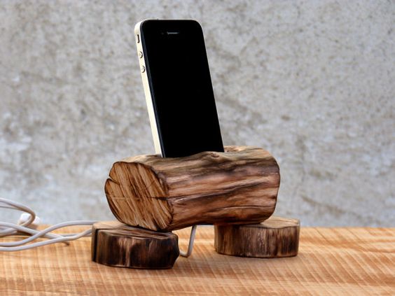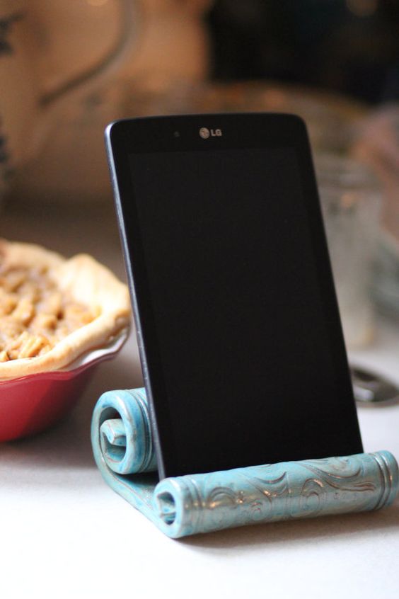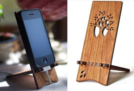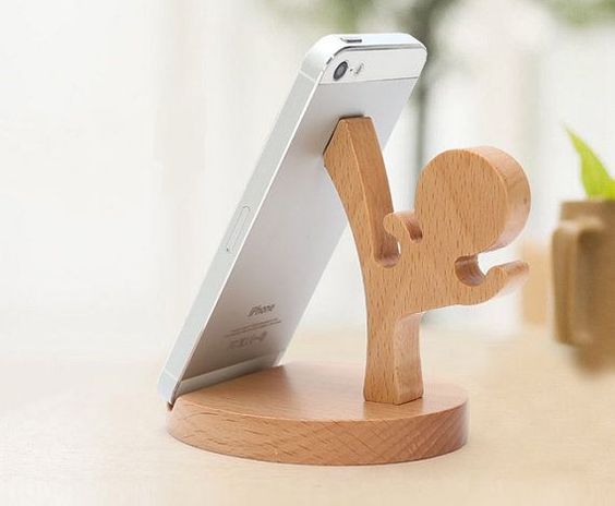 تتمثل ميزة هذا الحامل للهاتف ، المصنوع يدويًا ، في أنه يمكنك وضع الهاتف عليه أفقيًا وعموديًا.
