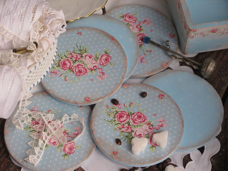 أبسط مبدأ decoupage هو الإلتصاق من الزخارف من المناديل.