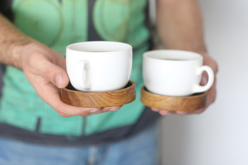 للحصول على منتج ذو شكل أكثر تعقيدًا ، تحتاج إلى إعداد مسبق لأصحاب حوامل خشبية لأصحابها. يسهل صنع كوب صغير أو حامل زجاجي من خشب دائري واحد. الخيار أعلاه مناسب لحوض أو مقلاة.