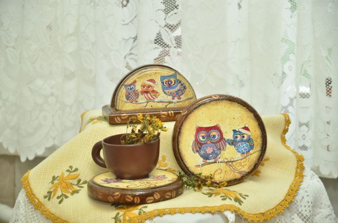 يمكن أن تكون مصنوعة من تحت حار من الخشب ، أو بالأحرى ، من قطع المنشار من فروع وجذوع. قطع التفاح والكرز لها بنية أصلية ، والعرعر يحتوي على رائحة لطيفة.