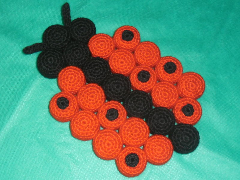 - بين الفراغات ضع القرص ، ثم خيط الأجزاء على طول الحافة.