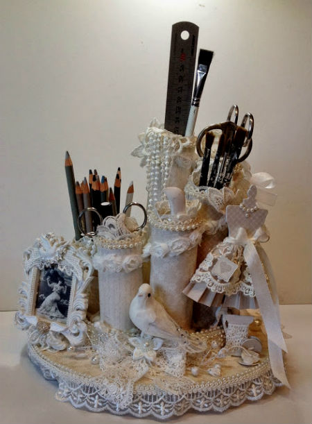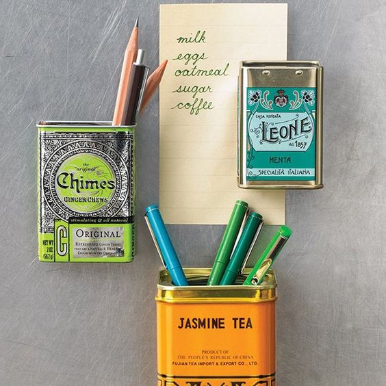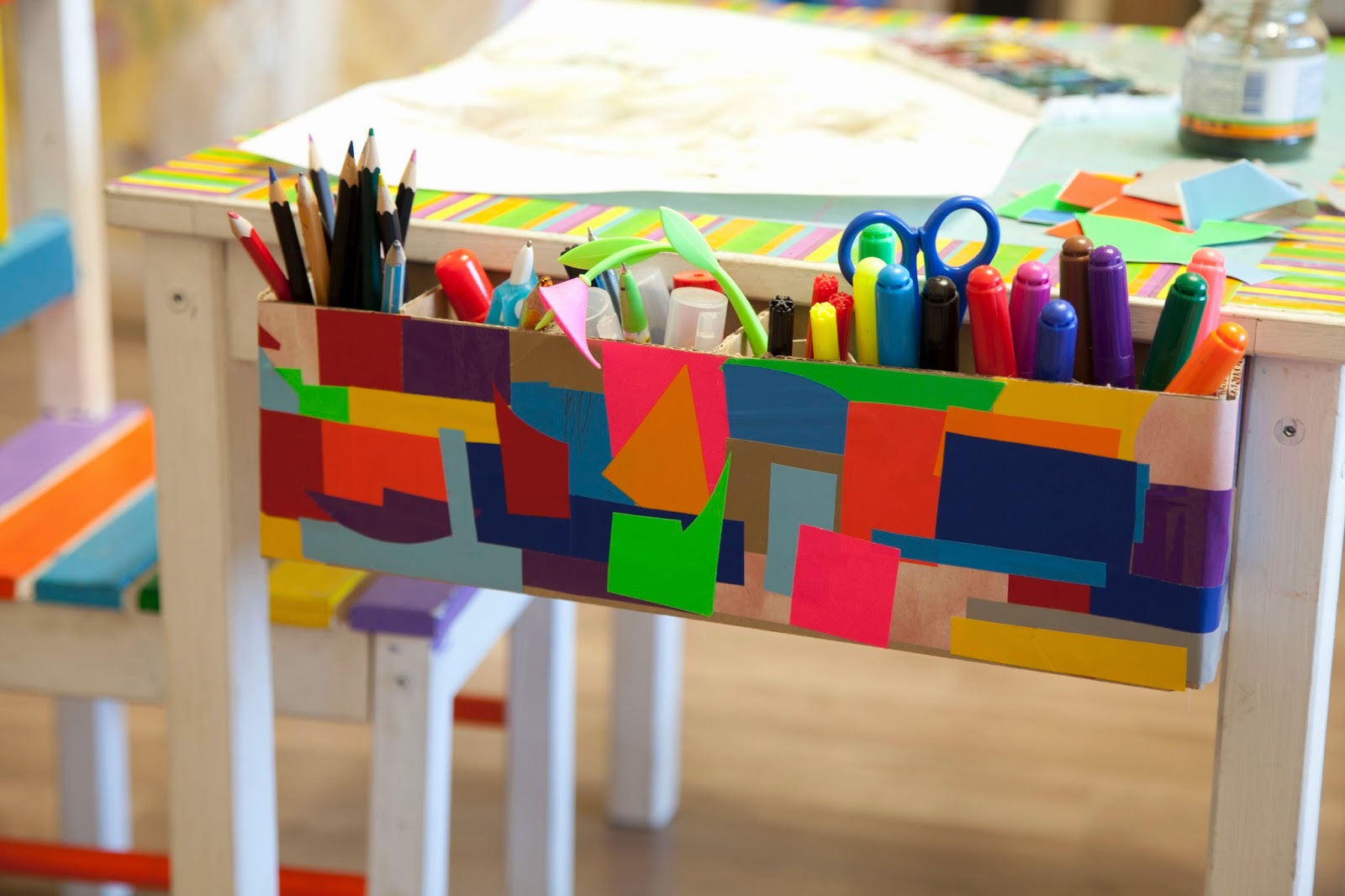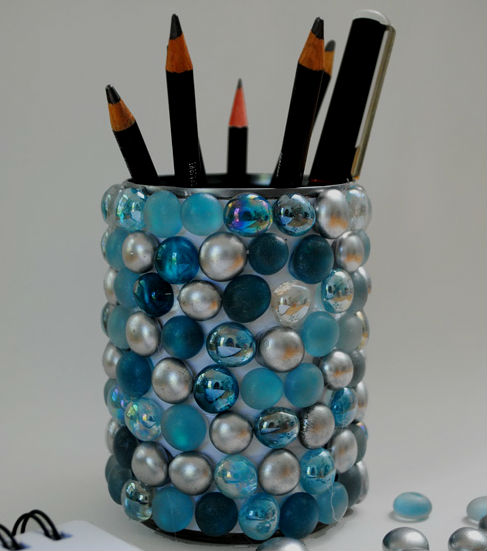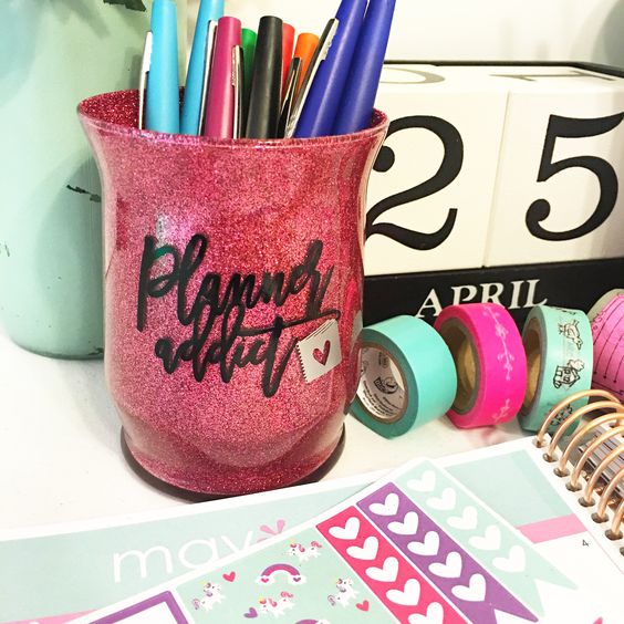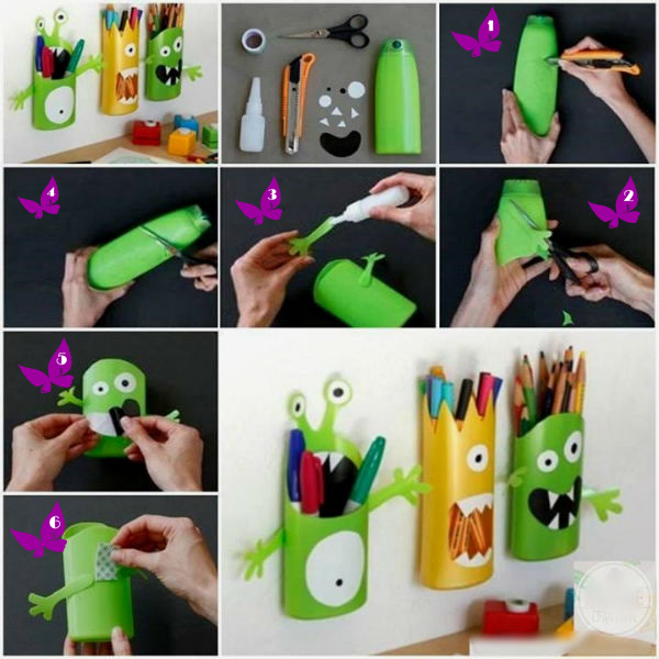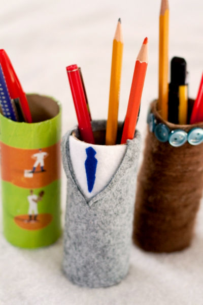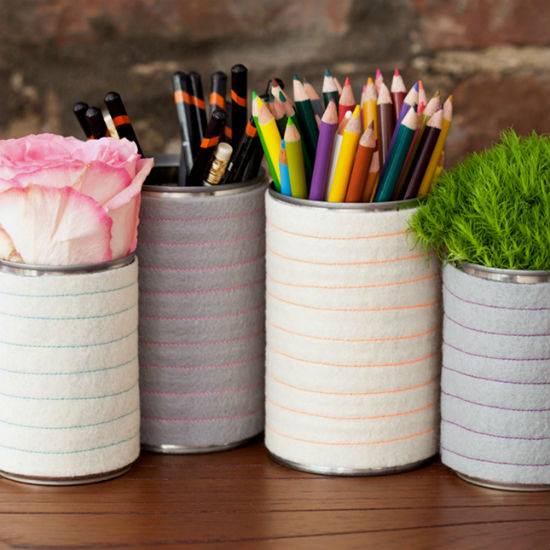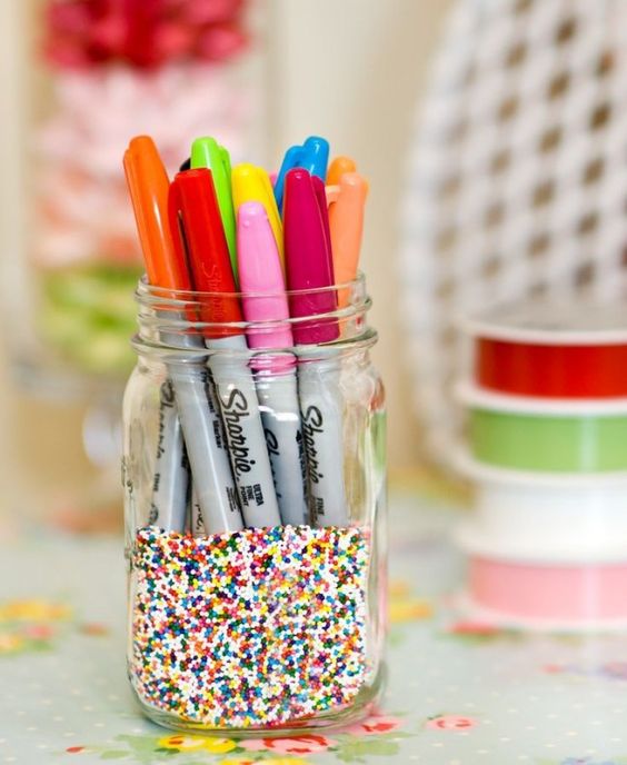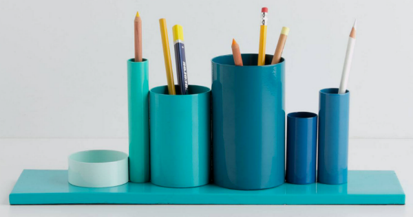 للحفاظ على النظام على سطح مكتبك المنزلي ، يمكنك إنشاء منصات لأقلام الرصاص والأقلام والمقص واللوازم المكتبية الأخرى.