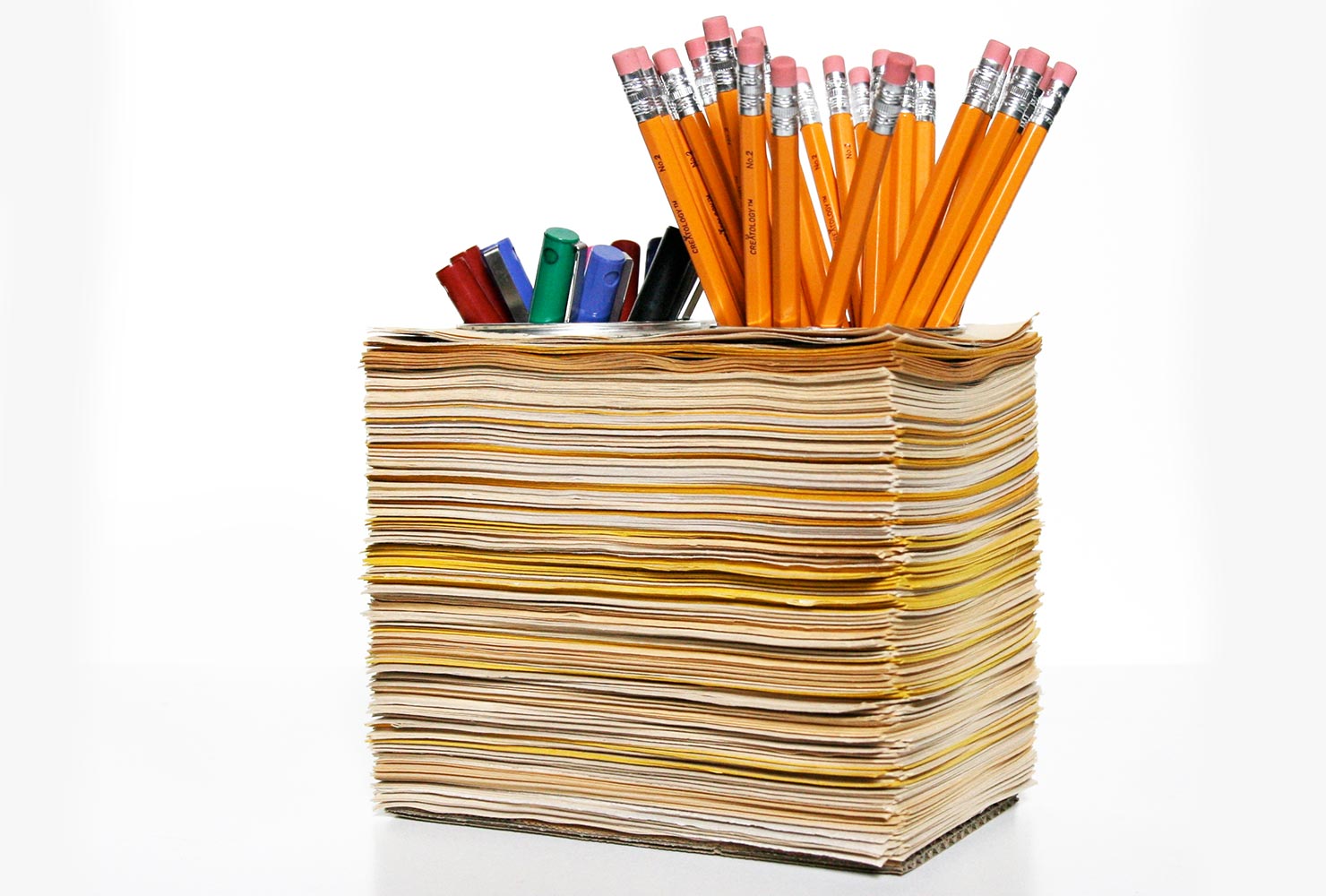 دعم أقلام الرصاص وأقلام الرصاص من أنابيب الصحف بأيديهم