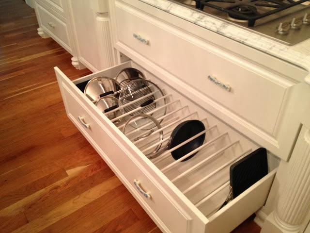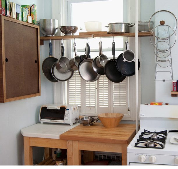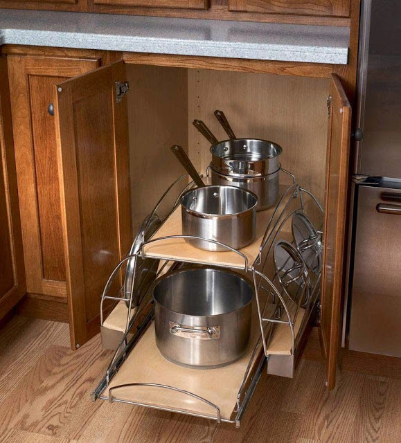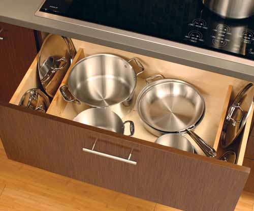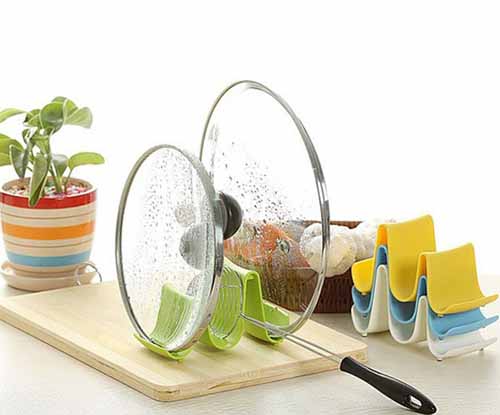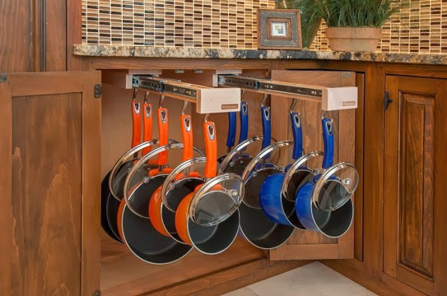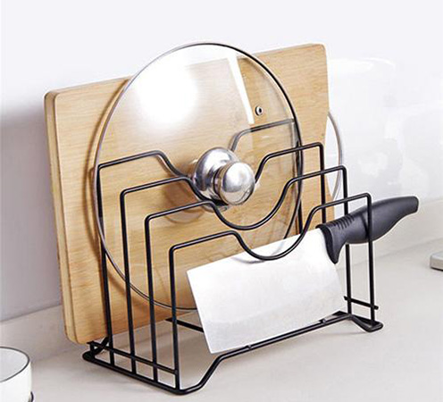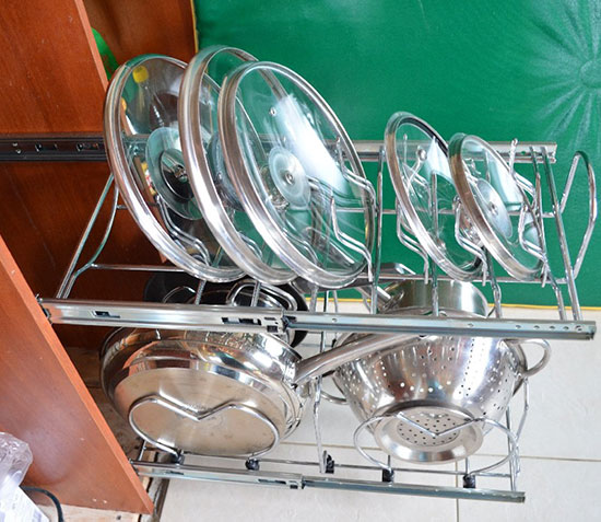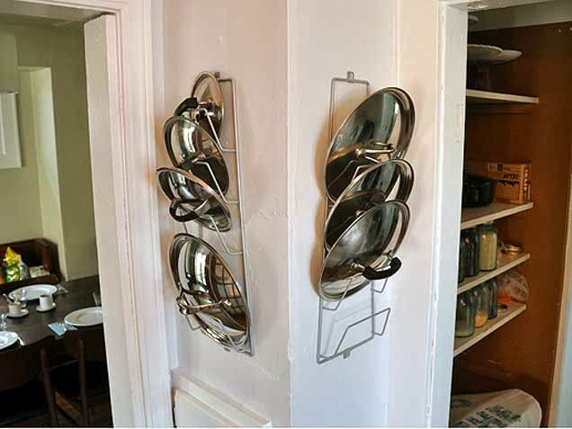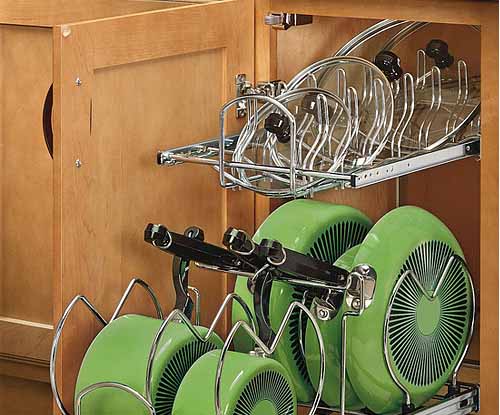 هناك العديد من أنواع أماكن التخزين الإضافية ، ولكن حامل المقالي والأغطية مناسب بشكل خاص.
