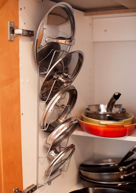 مجرد معرفة كيفية تخزين أغطية الأواني ، اتضح لتحقيق أعلى ترتيب في المطبخ.