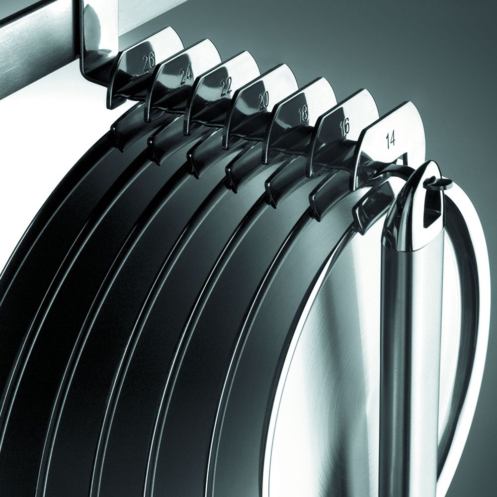 يتضمن ذلك حاملًا للأغطية من المقالي ، مما يساعد في الحفاظ على نظافته وجفافه وترتيب الغطاء بشكل مناسب من جميع أدوات المطبخ.