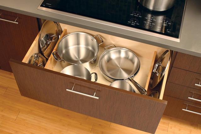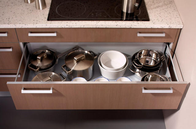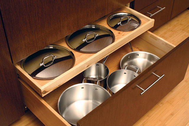 وحدات المطبخ الحديثة مجهزة بالفعل بأنظمة تخزين للأغطية.