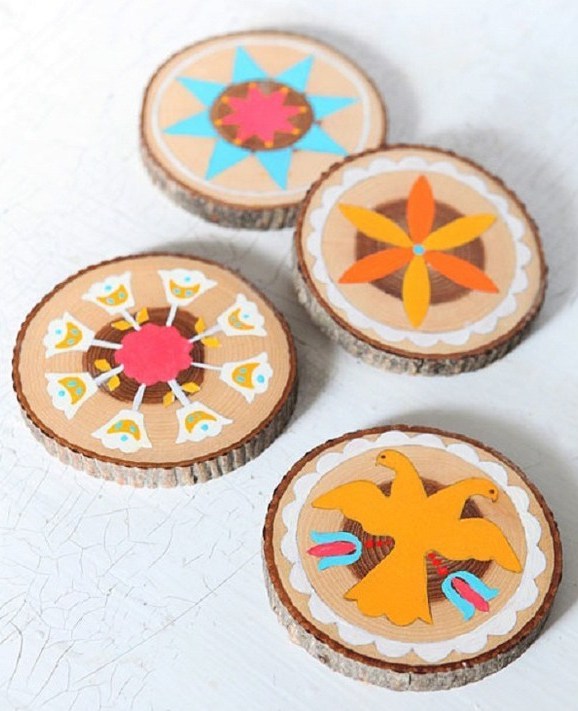 ورقة القشرة هي مادة مثيرة للاهتمام للغاية. منه يمكنك قطع التفاصيل ، منمق كقطعة خبز لتحميص. يمكنك ببساطة الطلاء باستخدام علامة الأكريليك ، حروف الحروف أو أي رموز ، عمل نقوش مضحكة.