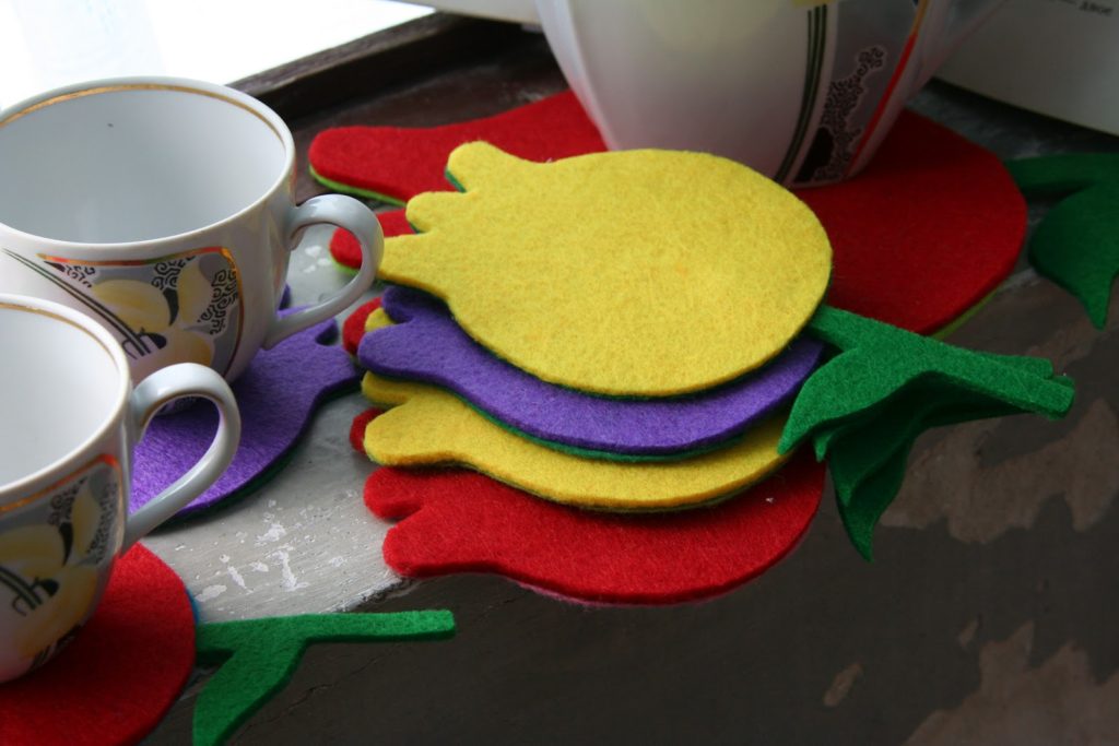 الإبر الملونة ، الخطاف أو الحياكة ، المقص. مع القليل من الصبر والمهارة ، يكون حامل الكأس افعل ذلك بنفسك جاهزًا. يمكن أن يكون في شكل دائرة أو مربع ، ملونة أو أحادية اللون.