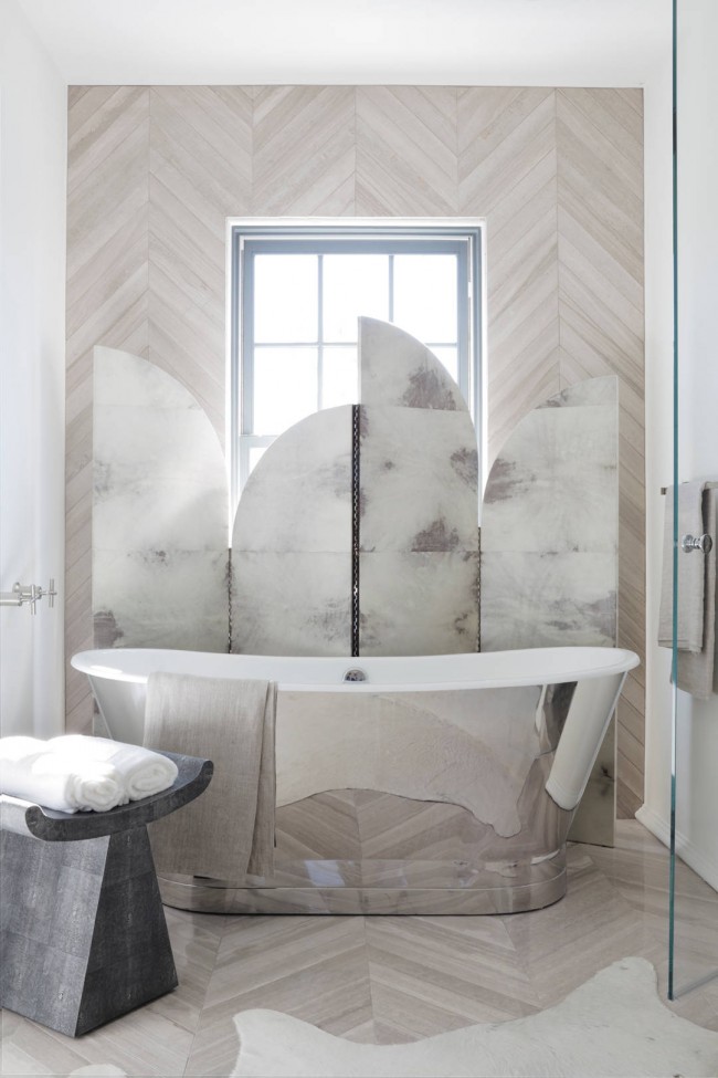 تعمل الشاشة لطول الغرفة بأكملها على طول الجدار كعنصر زخرفي.