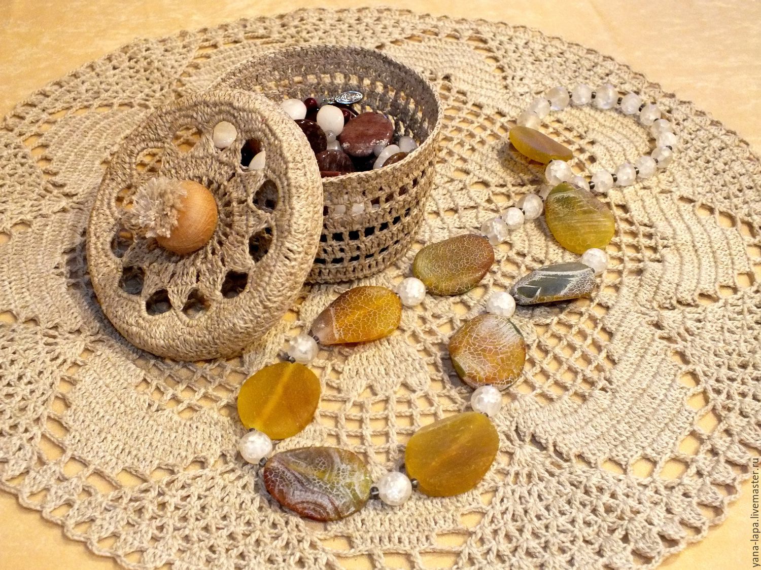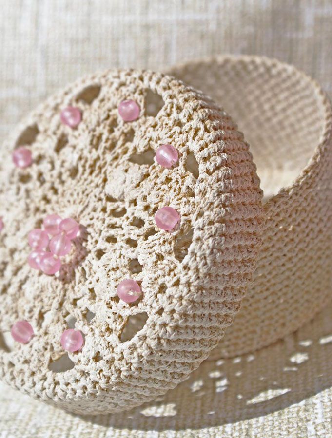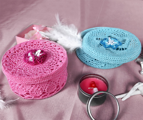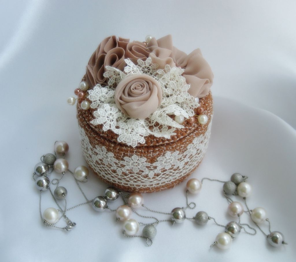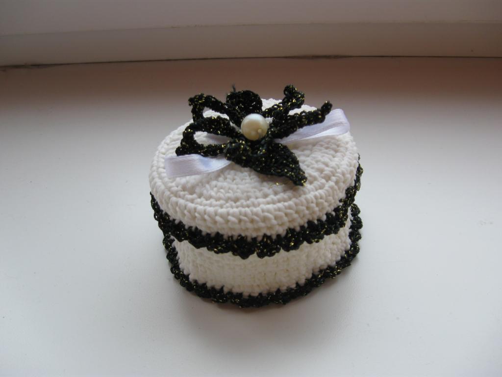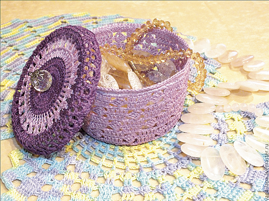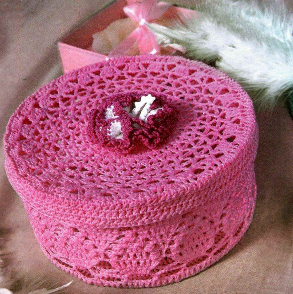 نوع غير عادي من الإبرة هو صندوق مجوهرات كروشيه من سلك مزخرف. تم ربطها بدقة وفقًا للمخطط. بعد اكتمال العمل ، يجب أن يكون المنتج نشويًا ويترك ليجف تمامًا.