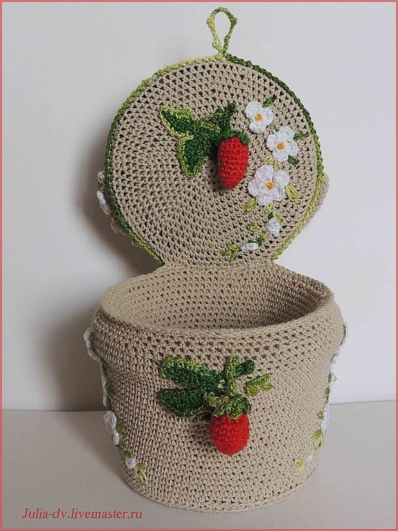 لتصنيعها يجب أن تأخذ جرة أو صندوق من الورق المقوى من شكل دائري. هي مربوطة حولها في دائرة مع كروشيه مزدوج بالطريقة المعتادة. نوافذ ، يمكن أن تكون الأبواب محبوكة على طول الطريق العمل مع خيوط من لون مختلف أو جعل التطبيقات وخياطة لهم. محبوك سقف المنزل في شكل مخروط. لصلابة ، يمكنك إدراج الكرتون في الداخل. لتزيين سقف إظهار الخيال. يمكنك تزيينه بالورود والأوراق وخياطة الشرائط والخرز.