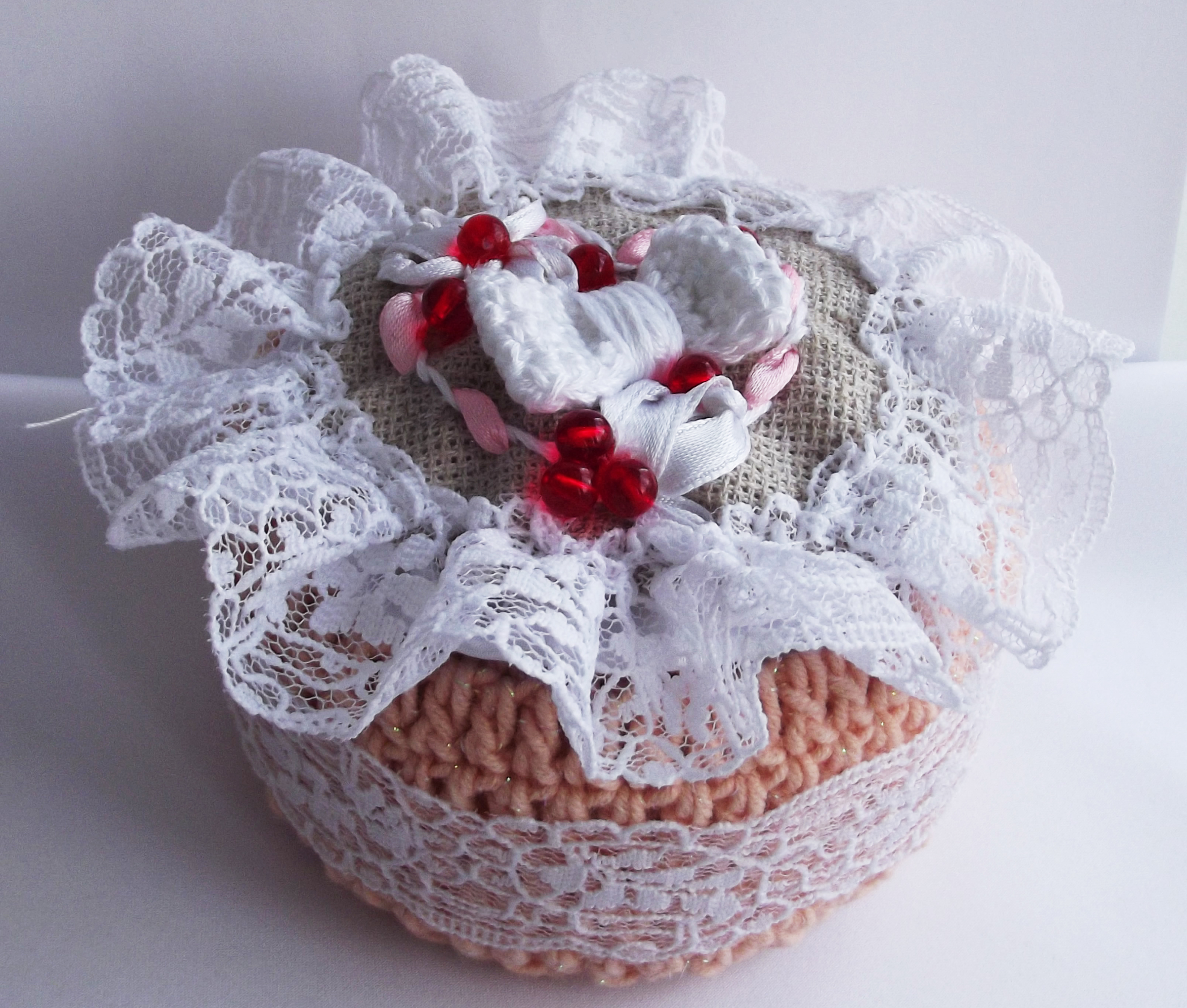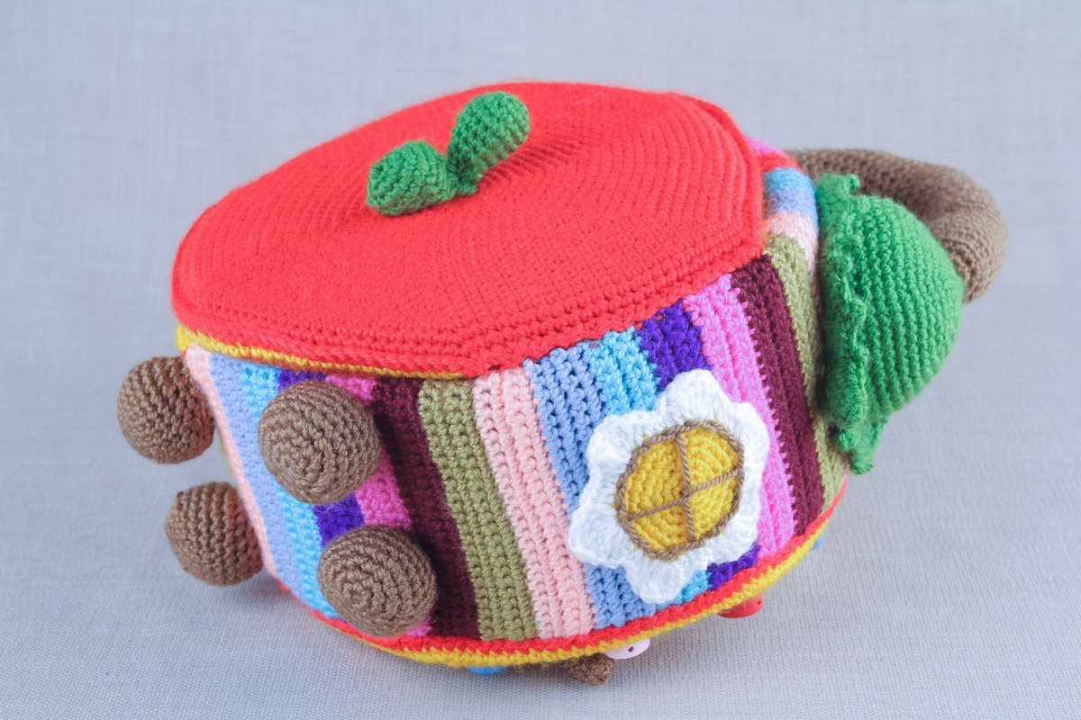 إذا كان لديك الكثير من بقايا الغزل المتعددة الألوان ، فقم بصنع قضيب إبرة جميل على شكل كعك ومعجنات صغيرة. هذه الصناديق الكروشيه في إطار المخطط. لصلابة جعل إطار شعر. هذه مادة لينة ، لكنها كثيفة يتم سحقها بشدة.