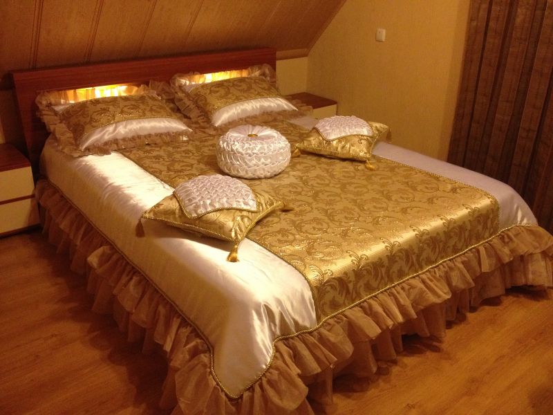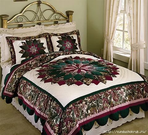 هذه طريقة رائعة لإنشاء غطاء سرير جميل على سرير مصنوع من مواد أكثر بساطة ، لممارسة عمل طبقات ناعمة ، وضع طيات ، عمل خط ، مراعاة النموذج.