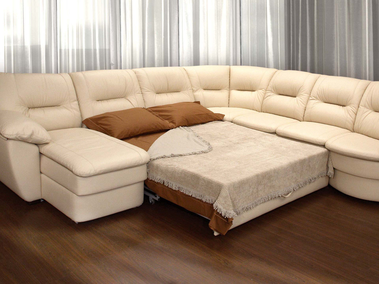 على الأريكة من الجلد البيئي ، من الجيد قضاء بعض الوقت في الجمع بين وجبة لذيذة ومشاهدة التلفزيون.