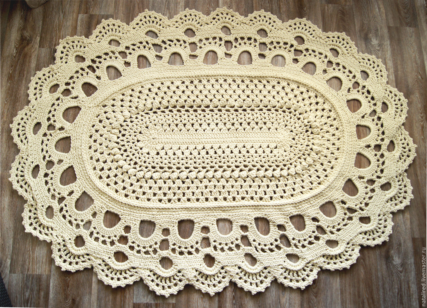 يتم سجادة البساط البيضاوي للسلك وفقًا لنمط مكون بشكل فردي (من الأفضل استخدام منديل دائري كأساس).