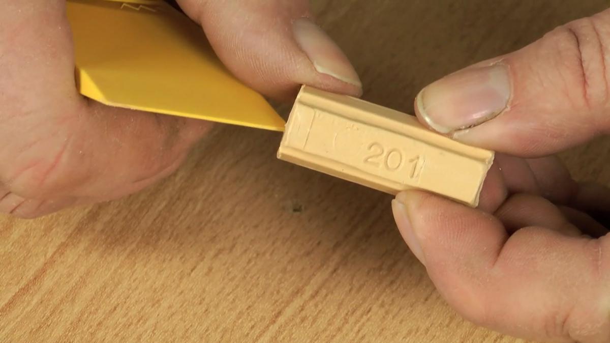إنه أكثر إزعاجًا للاستخدام ، ولكنه يستعيد عيوبًا خطيرة تمامًا. قبل تطبيقه يجب أن يذوب ويبرد لمدة بضع ثوان لتحسين التصاقه. إذا لزم الأمر ، قم بإزالة الفائض بسكين وامسحه بمنديل.
