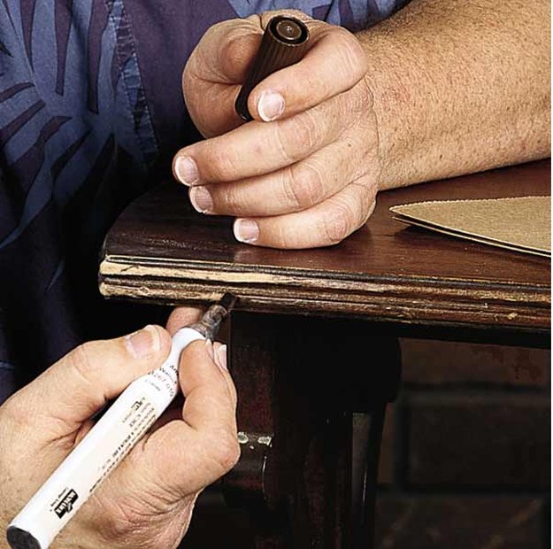 قلم الشمع هو الحل الأبسط والأكثر اقتصادا لترميم الأثاث.
