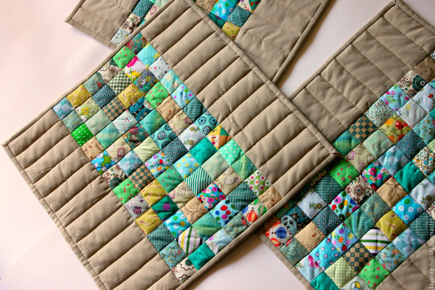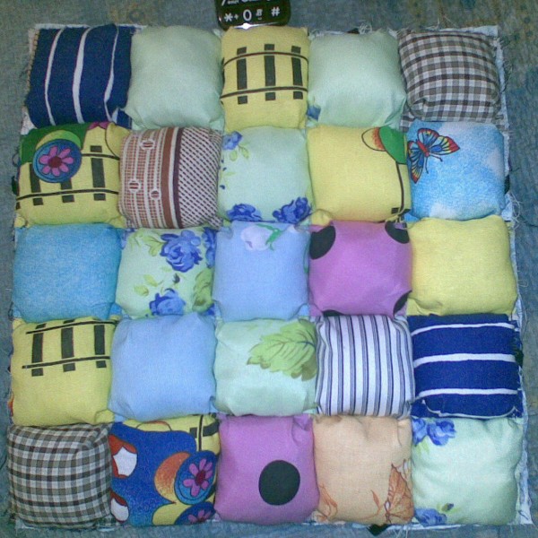 يوصى بعدم خلط حشو التقطيع ، فمن الضروري خياطة قطع القماش معًا ، لأن بعد الغسيل قد ينحرف في الزوايا.