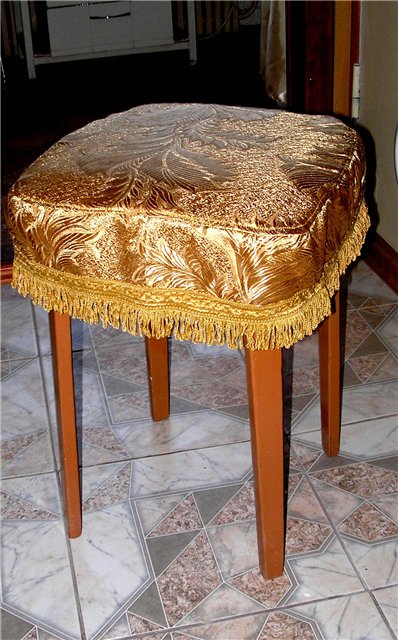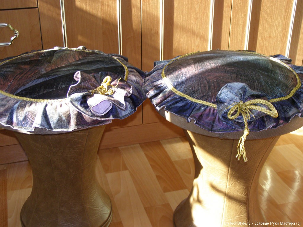 غطاء البرازمصنوعافعلها بنفسك، يزيد بشكل ملحوظ من راحة عملية السمة المطبخ. يمكنك قضاء المزيد من الوقت في شاي المساء أو العشاء العائلي. الفضاء طعام مكاسب كبيرة إذا قمت بإضافة الأثاث مع ديكور مماثل.