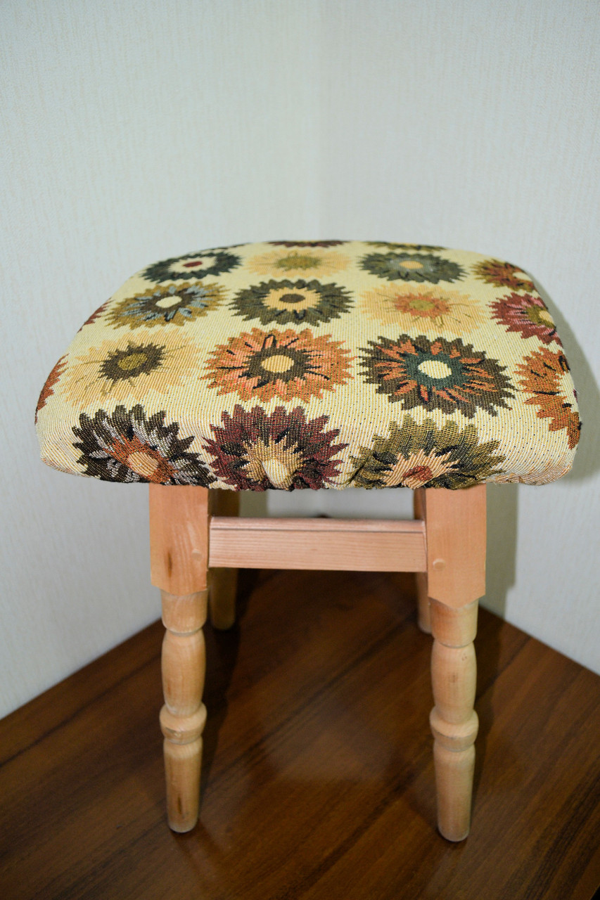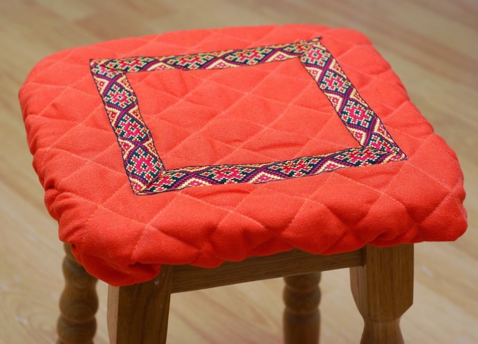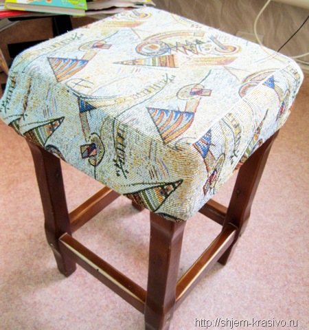 من السهل جداً خياطة الأغطية الموجودة على البراز ، وأي مضيفة ستتعامل مع العمل في غضون ساعتين.